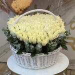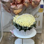Basket - 1 pcs White rose - 151 pcs balloons heart - 21 pcs