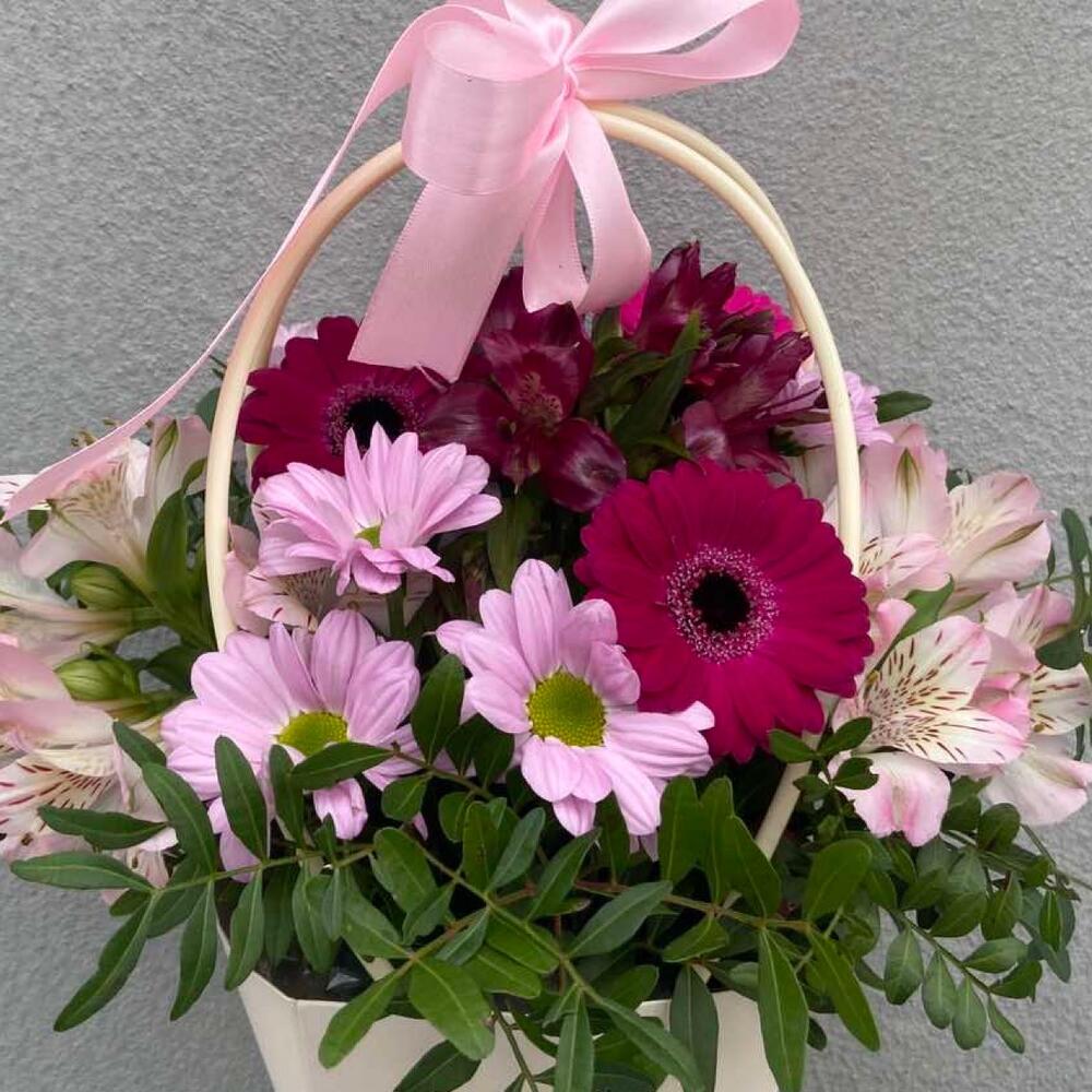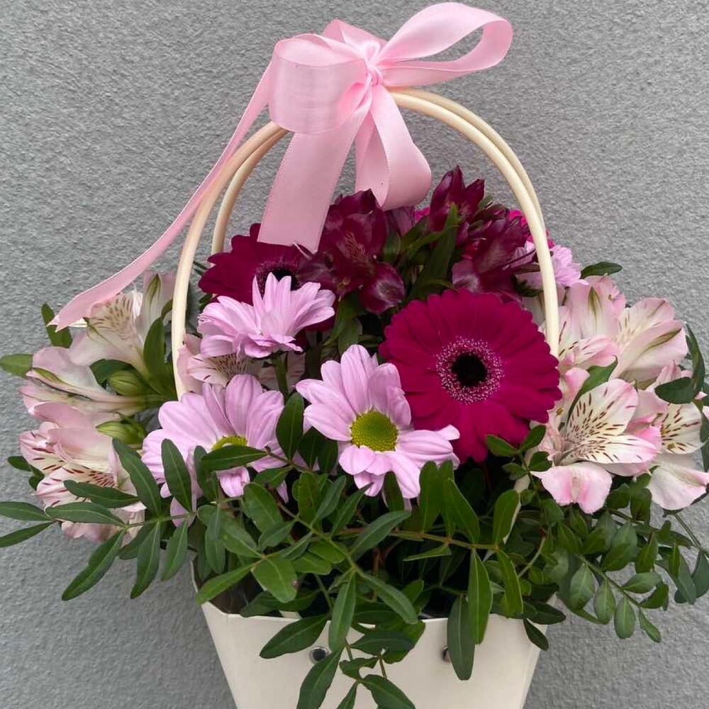Alstroemeria - 2 pcs Gerbera - 3 pcs Pistacia - 3 pcs kruzanteem - 1 pcs