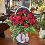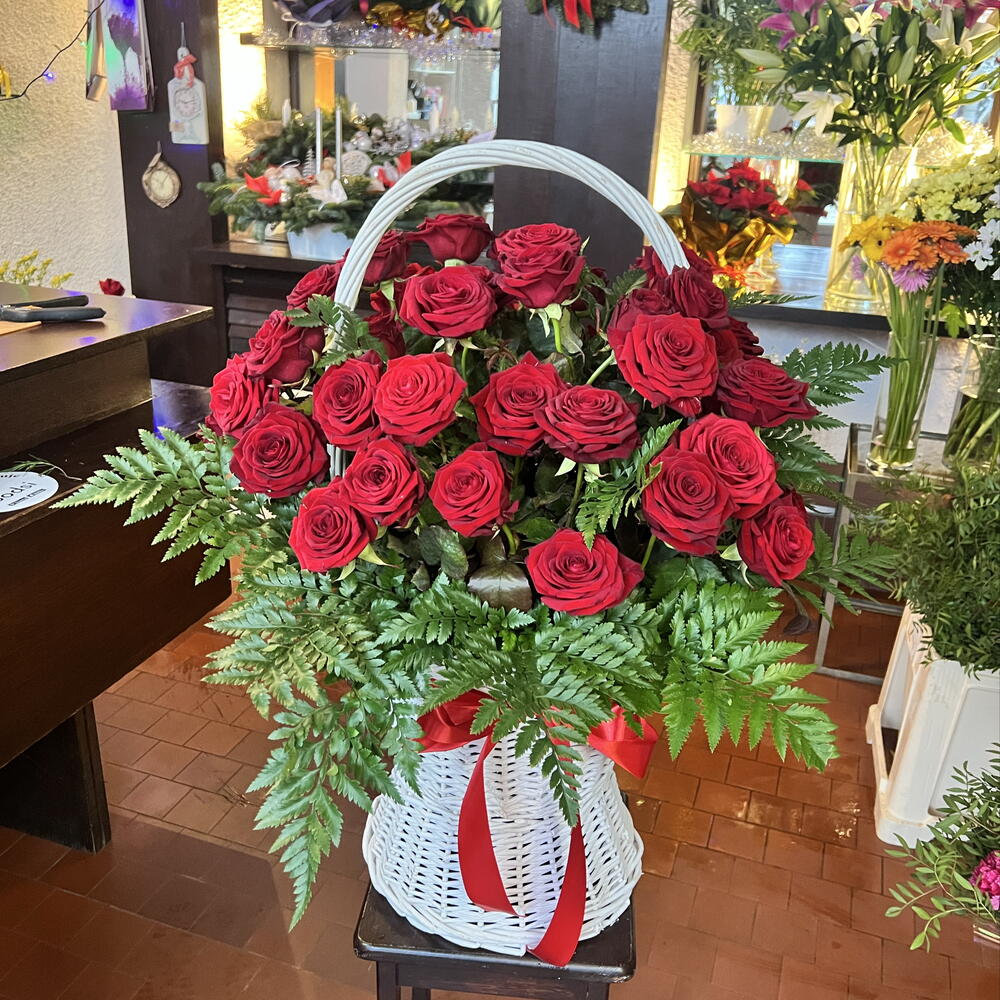 red rose - 51 pcs greenery - 10 pcs basket - 1 pcs