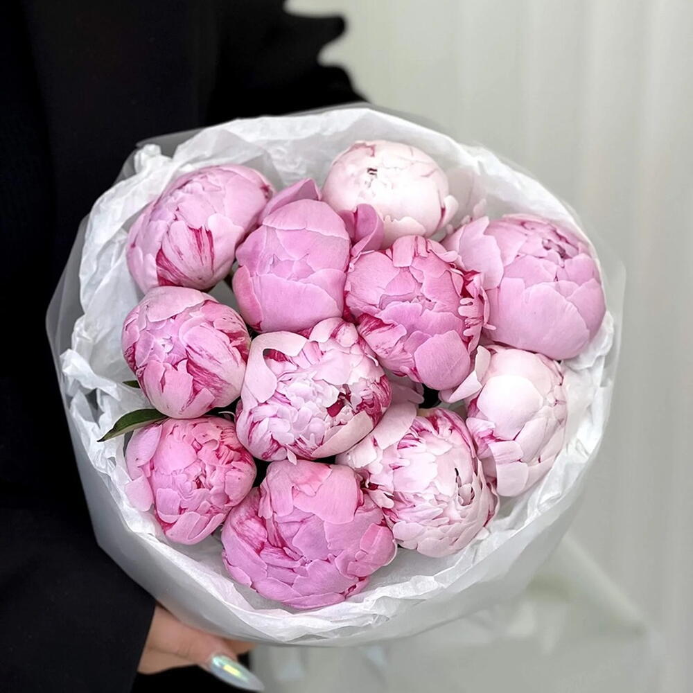 Круглый букет розовых пионов «Marcolino»
