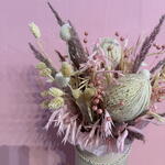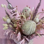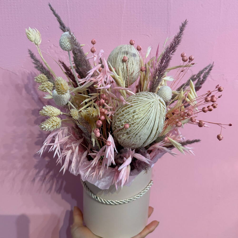 craspedia - 3 pcs lipidium - 1 pcs box - 1 pcs pampas grass - 1 pcs floral foam - 1 pcs wheat ear - 1 pcs exotic Indian dried goods - 2 pcs