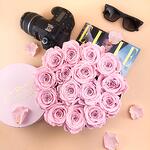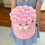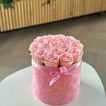 I care about you Are you looking for a way to express your affection towards someone close to you? A pink flowerbox with pink eternal roses will do it for you! This set from our limited edition is dedicated to those who appreciate delicate colors and luxurious materials. It will also be an ideal gift for less formal celebrations or when looking for a way to surprise someone for no special reason. Pink rose symbolizes: sympathy, devotion, friendship Eternal roses are living flowers that retain their color and shape for at least 2 years. You can be sure that this stylish set will dazzle much longer than a traditional bouquet. Number of roses: 13 Box diameter: Ø 20 cm We use one of the best varieties of eternal roses available in the world.