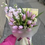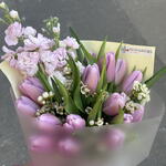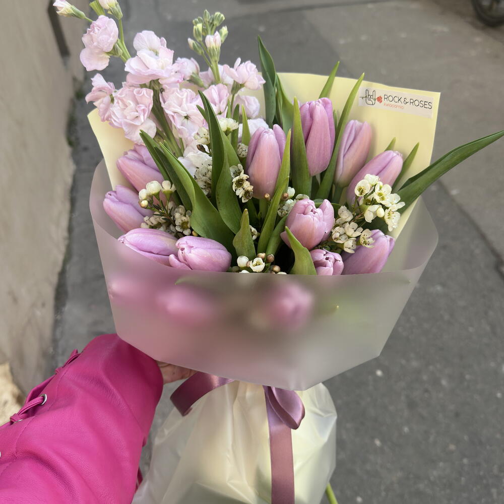 Tulips - 15 pcs Wax flower - 1 pcs matthiola - 2 pcs
