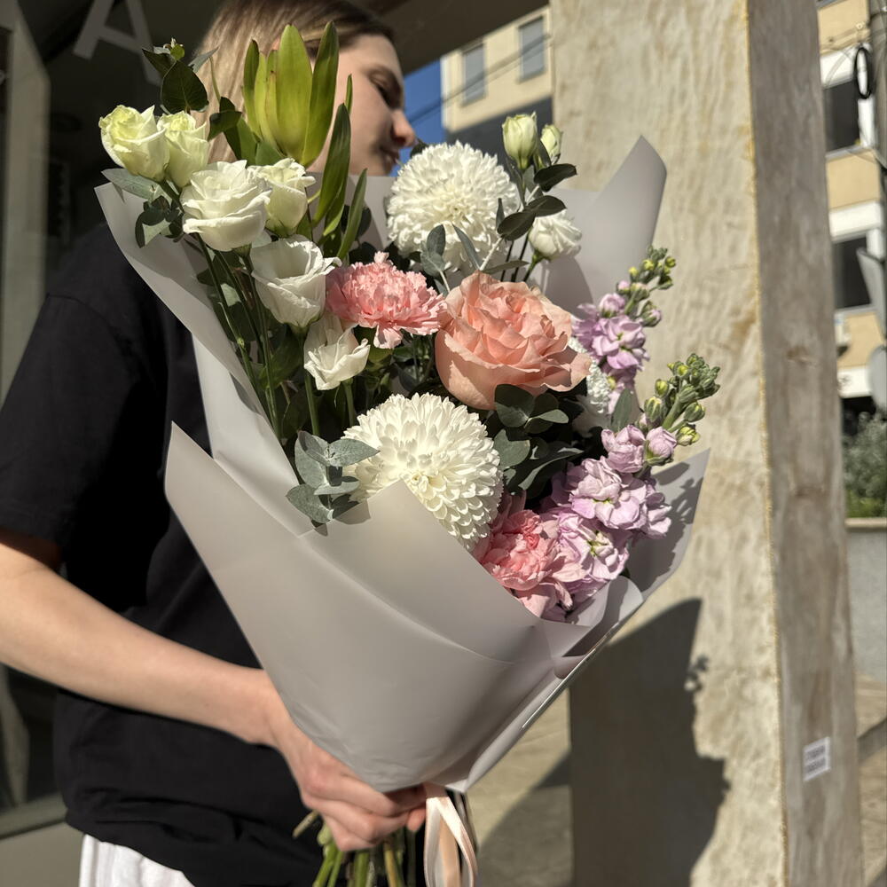 A soft bouquet in delicate lilac tones. Light, airy, and easy to read, it creates a calm and gentle mood. Balanced and natural in shape, this arrangement feels effortless and sincere — perfect for a sweet gesture or to add a quiet touch of color to any space. Carefully selected fresh flowers. Fast delivery across Belgrade.