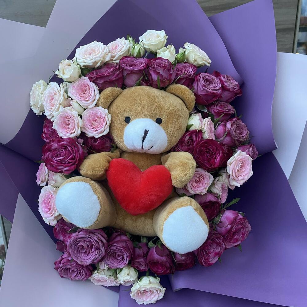 paper - 4 pcs mini roses - 15 pcs teddy bear with heart 18cm - 1 pcs