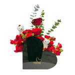 Red rose - 10 pcs red baby rose - 10 pcs small teddy bear - 2 pcs eucalypse - 4 pcs