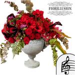 red rose and different red flowers composition in particolare vase - 1 pcs