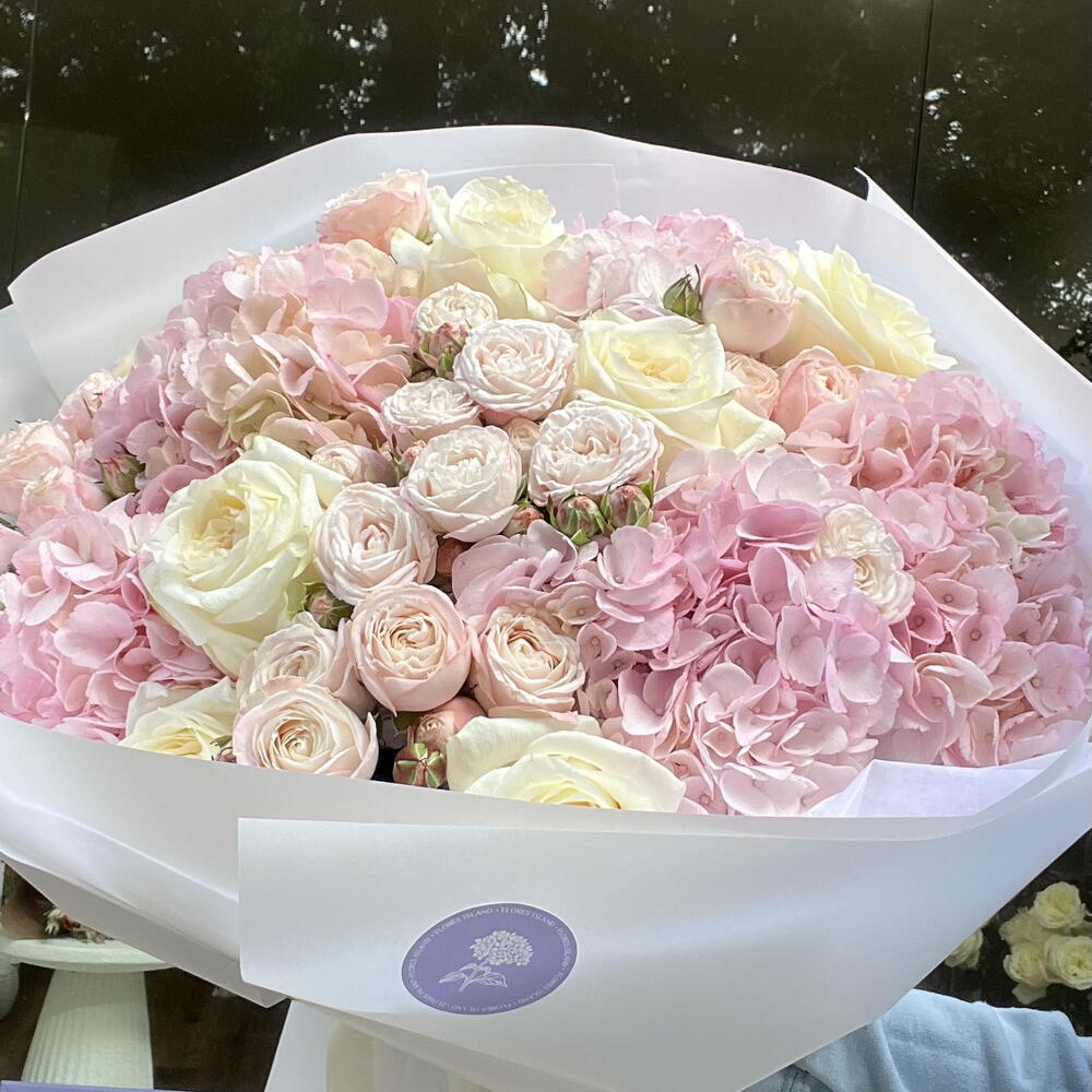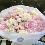 Spray rose - 6 pcs Hydrangea - 6 pcs White rose - 7 pcs