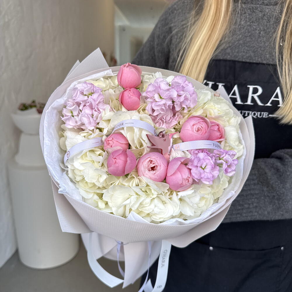 Hydrangea - 4 pcs matthiola - 3 pcs silva pink - 4 pcs