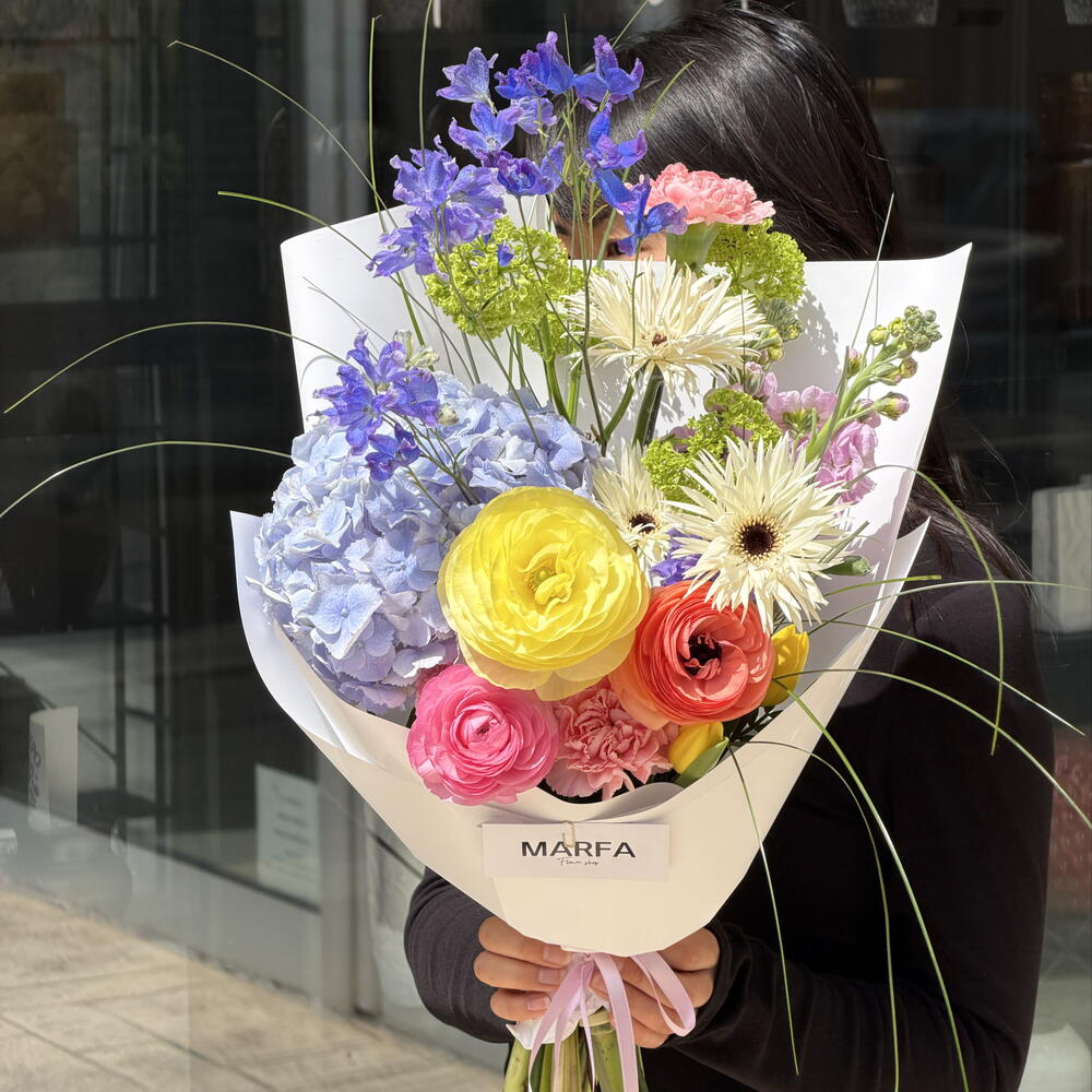 A lush, vibrant bouquet designed to spark instant joy. This bright, saturated, dopamine-boosting arrangement pairs juicy ranunculus with soft hydrangea for a rich, layered look that feels fresh and full of life. Fast delivery across Belgrade.