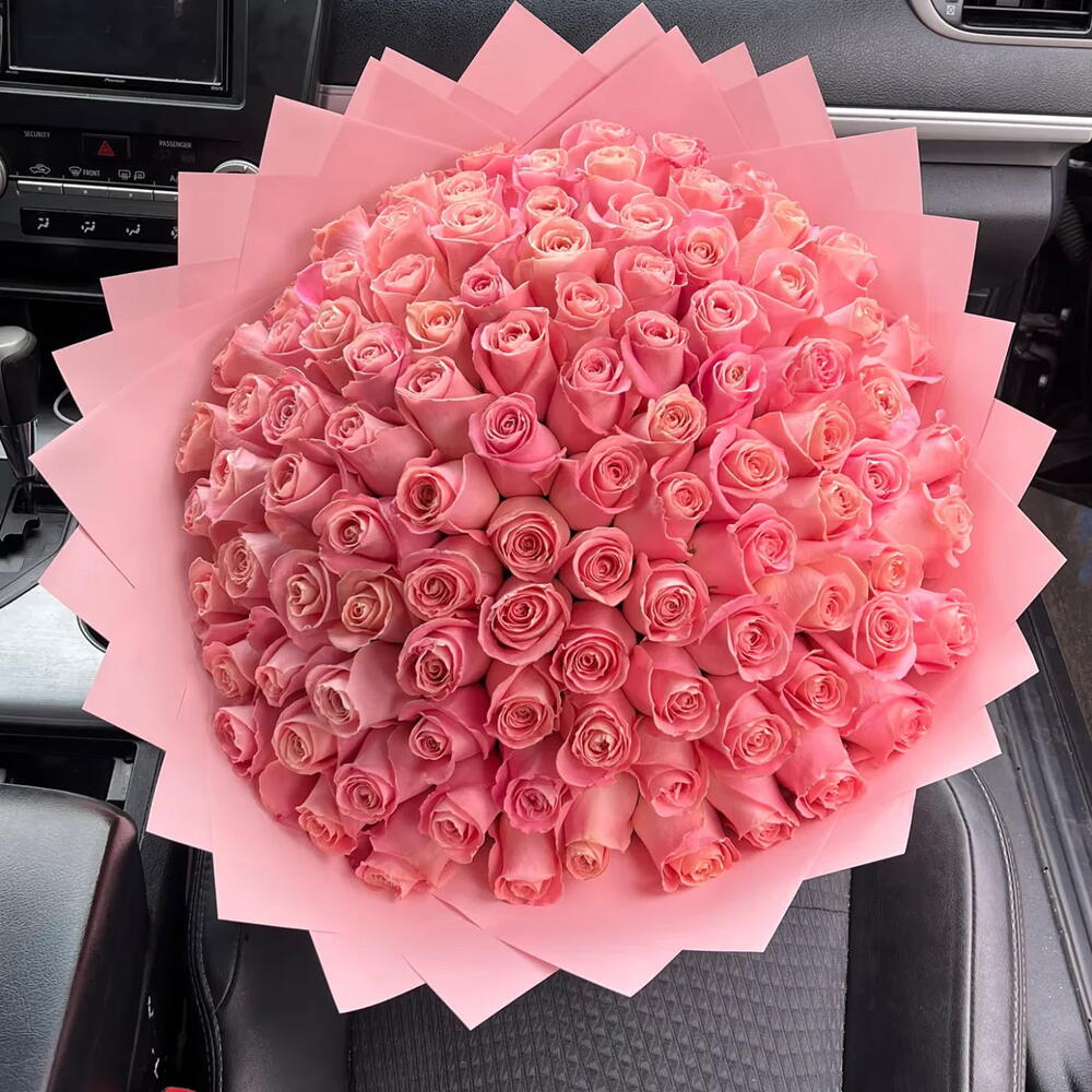 Stunning bouquet of 75 premium pink roses — full, elegant, and designed to make a lasting impression. Handcrafted by a Miami florist using fresh long-stem roses and styled for a luxurious, voluminous look. Perfect for grand romantic gestures, birthdays, celebrations, and unforgettable moments. • Premium fresh pink roses • Gift-ready elegant wrapping • Complimentary message card included • Same-day delivery in Miami