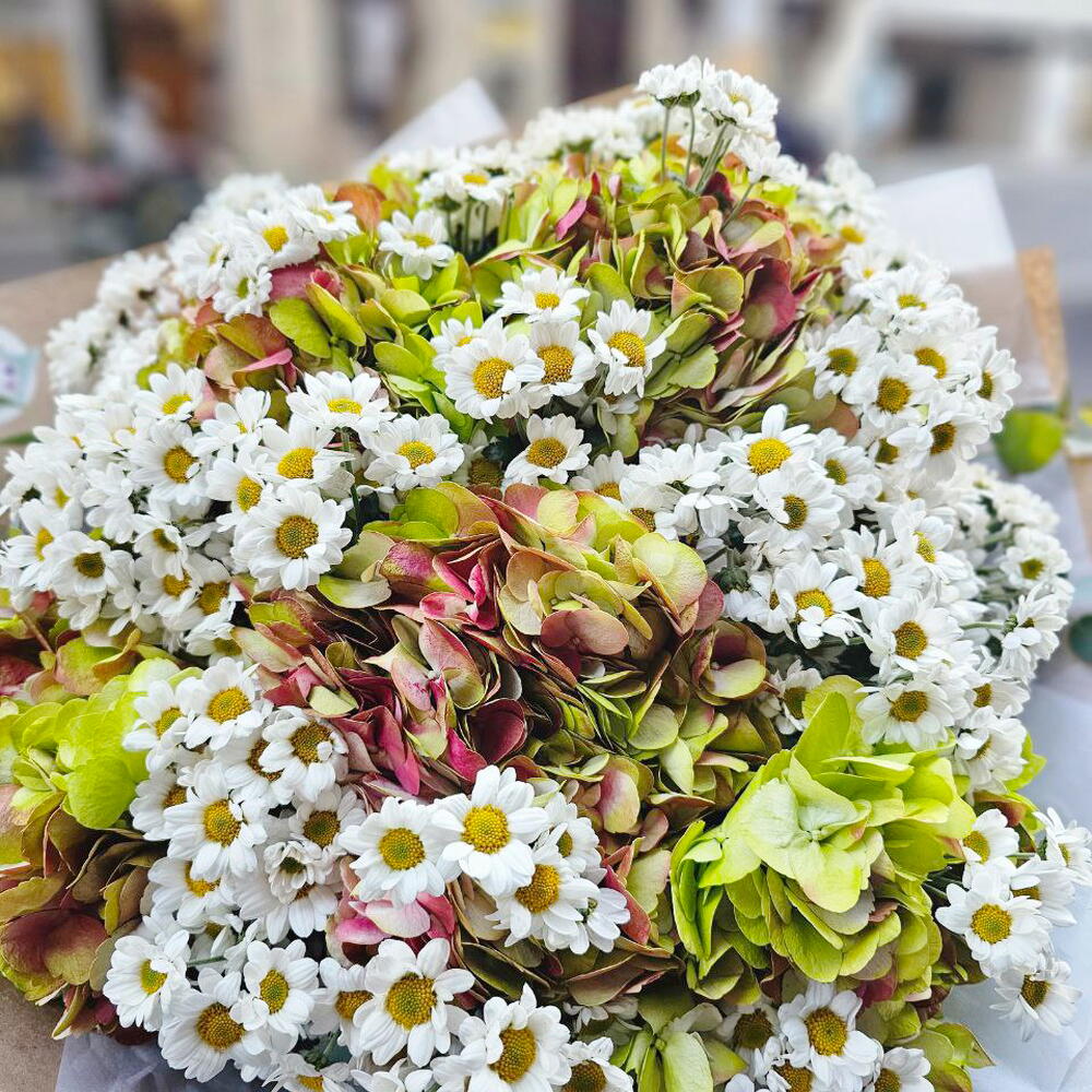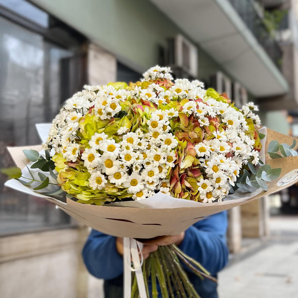 hortensias - 6 pcs eucalyptus - 5 pcs manzanilla - 35 pcs