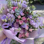 eucalyptus cineria - 3 pcs pink - 7 pcs levkoi - 3 pcs spray rose mix - 3 pcs lisianthus lavender - 5 pcs