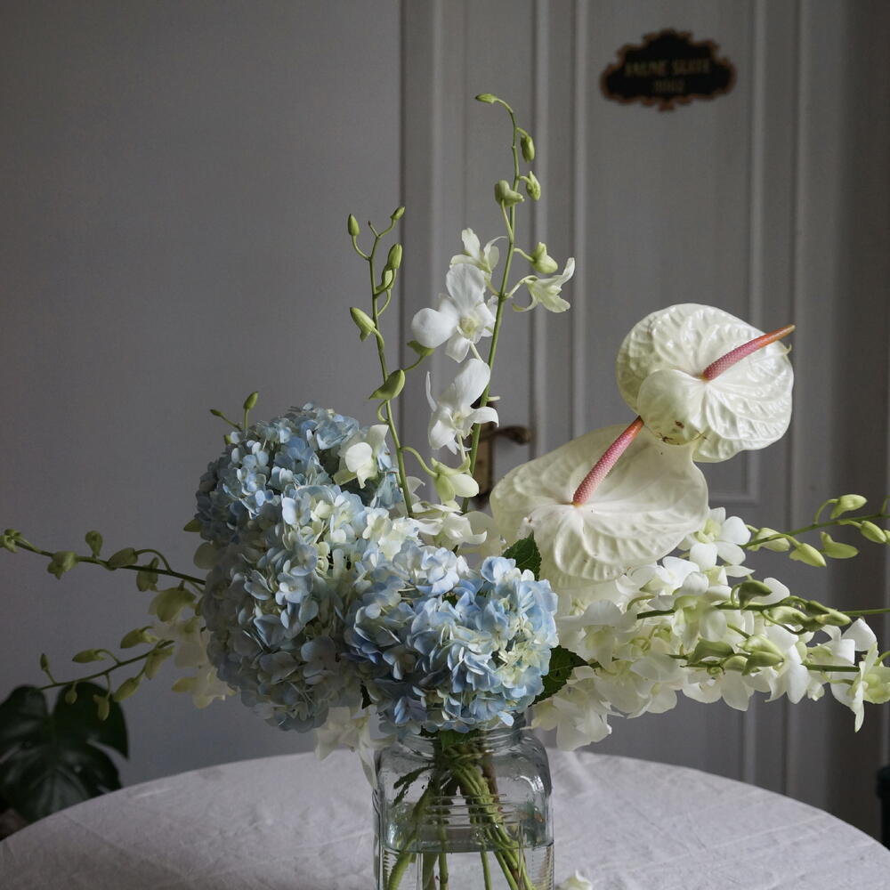 Hydrangea - 3 pcs Anthurium - 2 pcs Orchid - 3 pcs