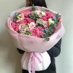 Eustoma - 4 pcs silva pink - 5 pcs oksipetal - 5 pcs eucalyptus - 1 pcs ozathamnus - 3 pcs
