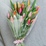 A simple and elegant bouquet of mixed tulips in various bright shades! All flowers are unique, that’s why the photo is of an informational nature. The color, size, and form of the flower that you see in the photo may vary.