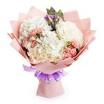 Eustoma - 2 pcs hydrangea - 3 pcs spray rose - 2 pcs green accessories - 2 pcs decorative packaging - 1 pcs