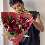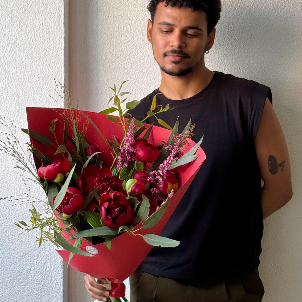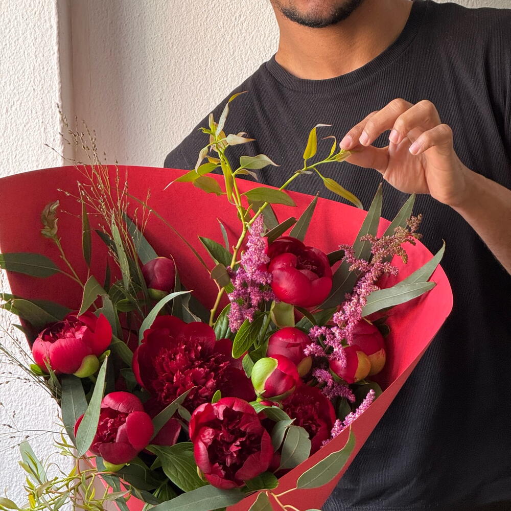 Peony - 11 pcs astilbe - 4 pcs eucoliptus - 3 pcs