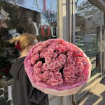 Букет красивый получился. Доставили немного позже назначенного времени, не критично для нас это было. Фото отчет сделали быстро. Доставка считаю дорогая, плюс большие розы не первой свежести были.