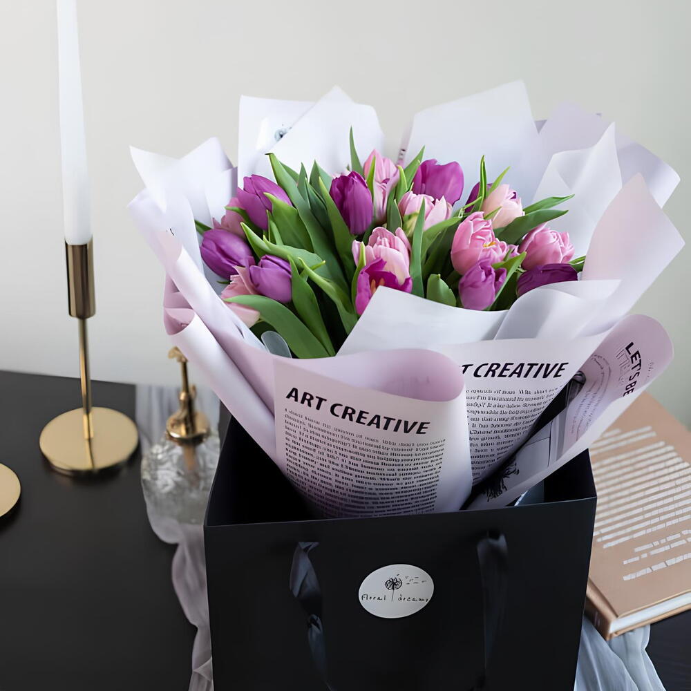 Flower tulip bouquet This enchanting arrangement features a stunning display of tulips in a single. This mono tulip bouquet exudes an air of refined sophistication and makes a striking statement with its minimalistic charm. It is a symbol of grace and poise, perfect for expressing admiration, gratitude, or sending well wishes. Whether presented as a thoughtful gift or used to enhance your own space, the mono tulip bouquet is a timeless classic that brings joy and beauty wherever it blooms.