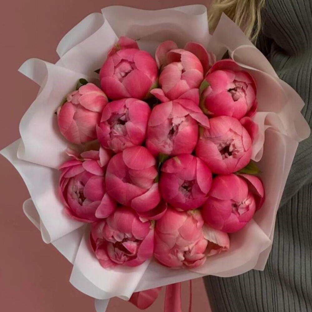 Монобукет из 13 пионов «Coral Charm»