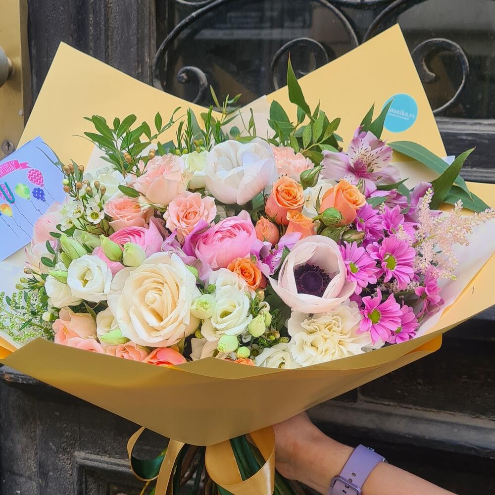 Soft pastel bouquet created to express care, tenderness and love. Perfect for meaningful and emotional moments. • Fresh flowers, daily selection • Same-day delivery in Belgrade • Photo confirmation before delivery • Carefully packed by our florist