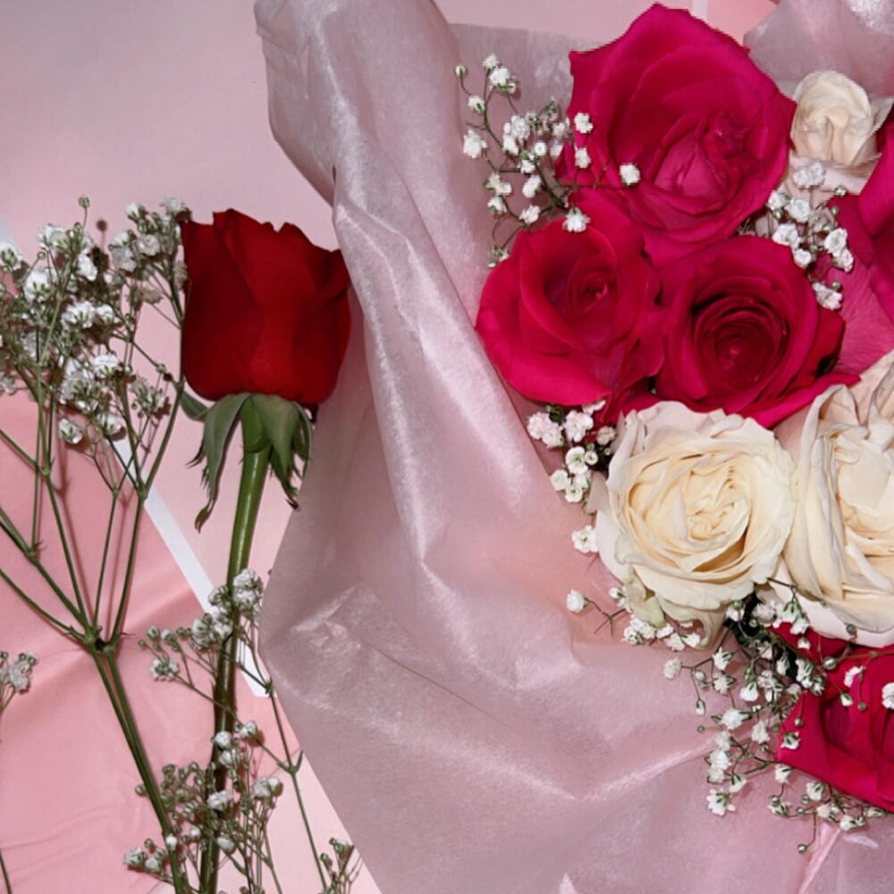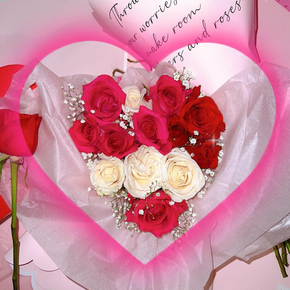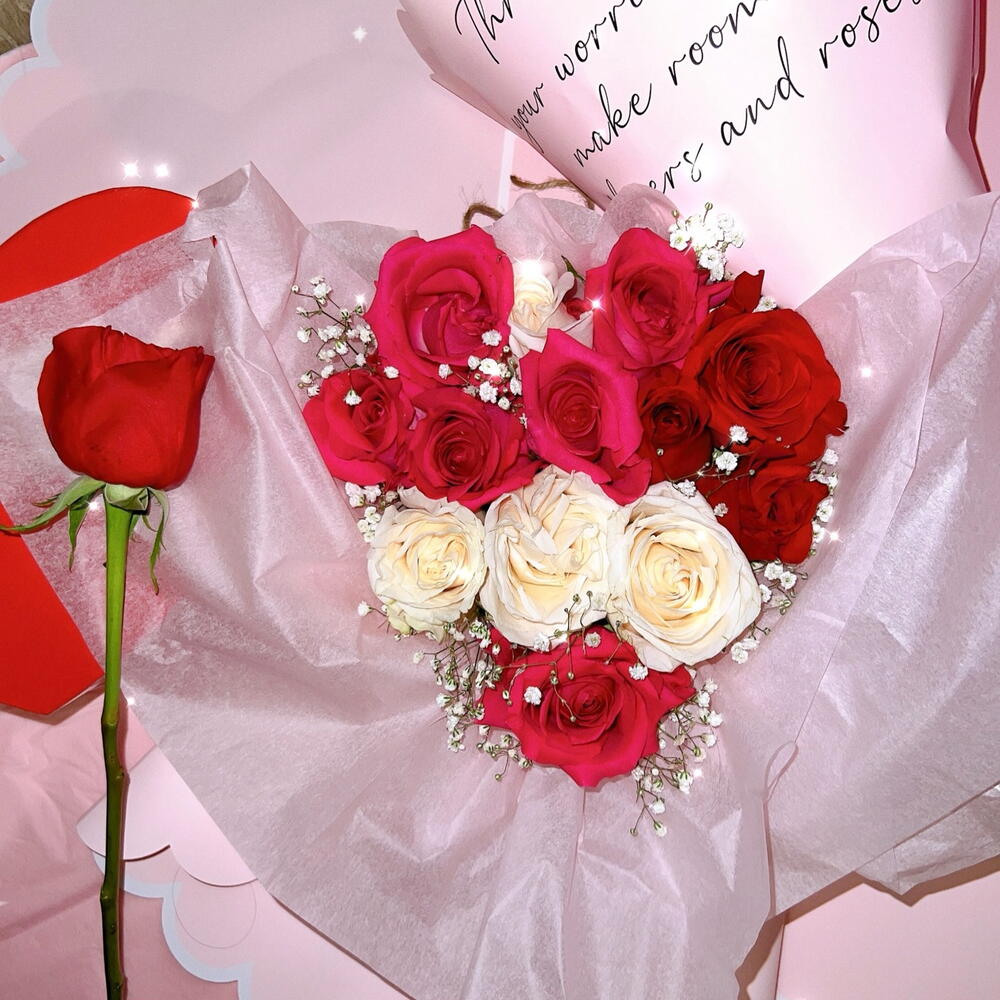 baby’s breath - 3 pcs roses - 12 pcs rose heart mold - 1 pcs