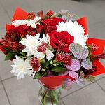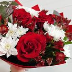 Chrysanthemum - 3 pcs Alstroemeria - 5 pcs rose red - 3 pcs decorative greenery - 2 pcs paber - 2 pcs