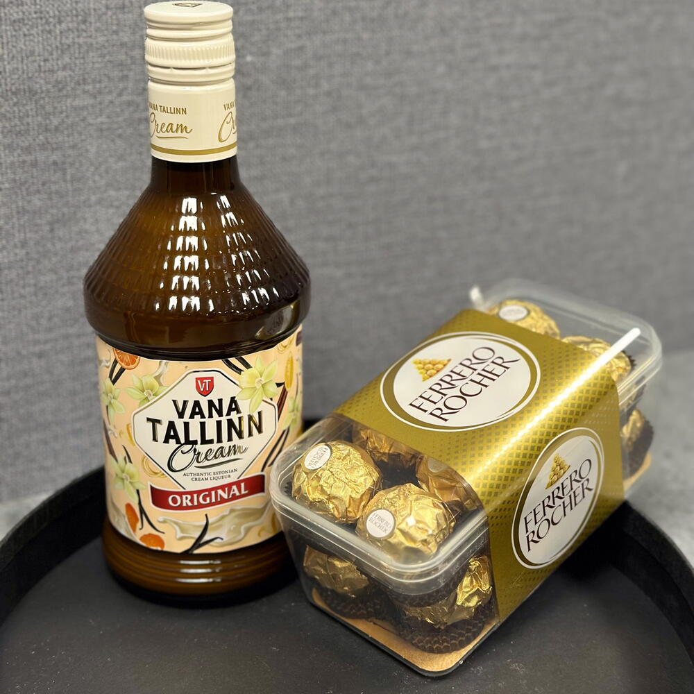 Ferrero rocher - 1 pcs packaging - 1 pcs card - 1 pcs vana tallinn cream 16%vol - 1 pcs