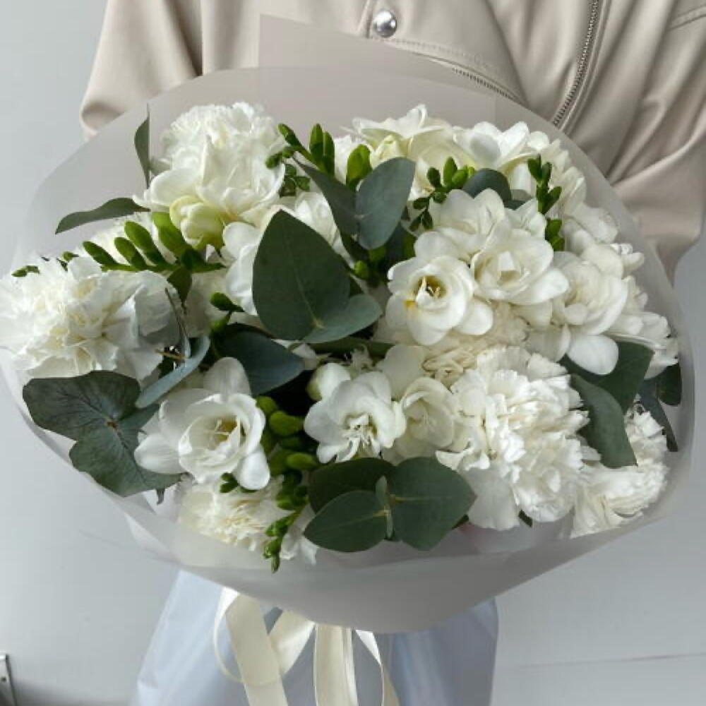 Freesia - 9 pcs Eucalyptus - 3 pcs Varietal dianthus - 10 pcs