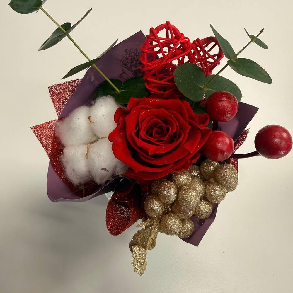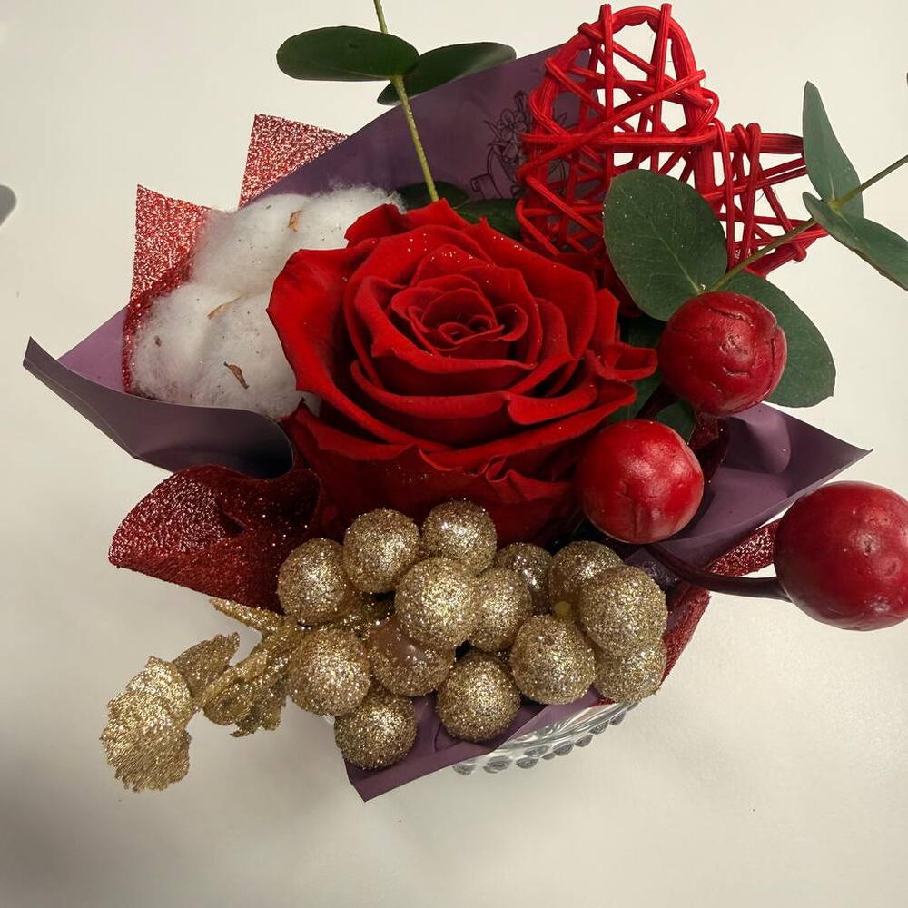glass vase - 1 pcs decor - 3 pcs heart - 1 pcs stabilized rose - 1 pcs