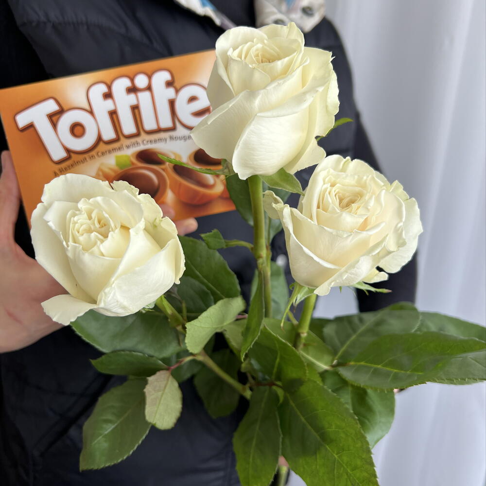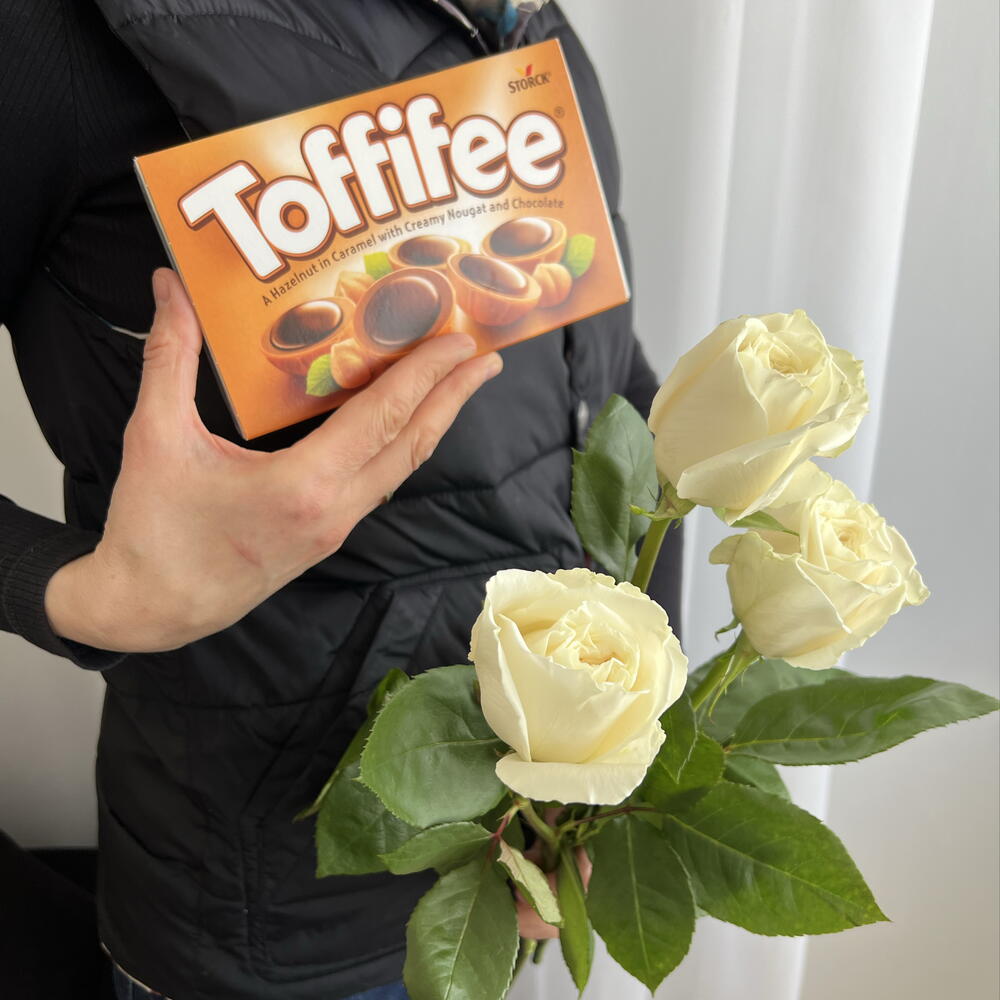 sweets - 1 pcs white roses - 3 pcs