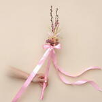 pussy willows - 3 pcs natural wheat ears - 3 pcs powder pink wheat ears - 3 pcs peach-colored wheat ears - 3 pcs dyed pink baby's breath - 3 pcs light pink ribbon - 1 pcs