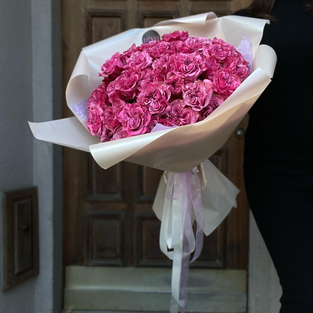 Лента атласная - 1 pcs Пленка матовая - 4 pcs Открыточка с вашими пожеланиями - 1 pcs premium bouquet of high quality ecuadorian rose - 45 pcs