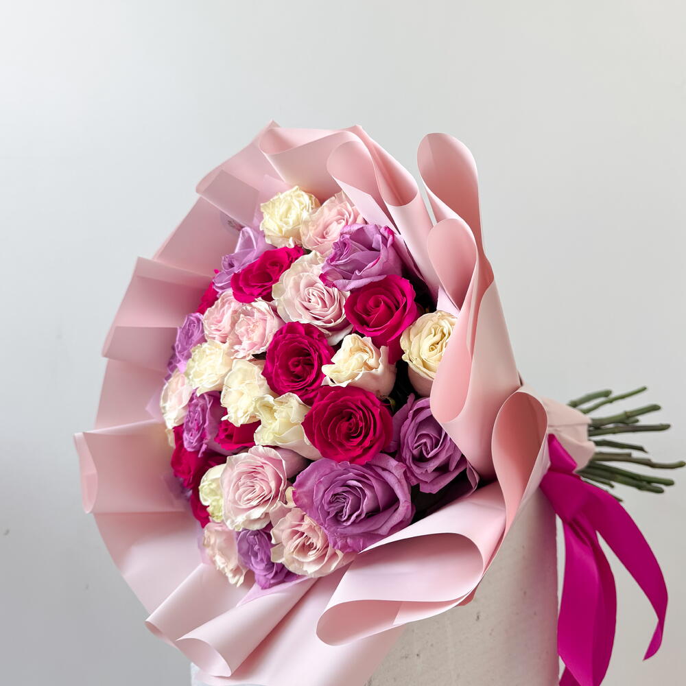 Pink rose - 8 pcs White rose - 7 pcs dark pink rose - 8 pcs purple rose - 8 pcs