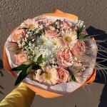 Gerbera - 3 pcs rose - 5 pcs astromeria - 3 pcs carnation - 5 pcs daisy - 1 pcs gypsophila - 2 pcs The language of the input text is Polish, and the word "ostnica" translates to "feather grass" in English. - 1 pcs