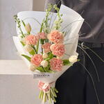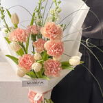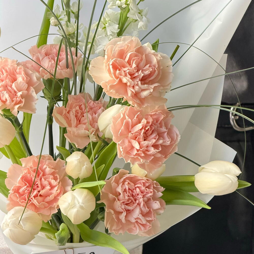Beargrass - 1 pcs Tulip - 8 pcs dianthus - 7 pcs mattiola - 3 pcs