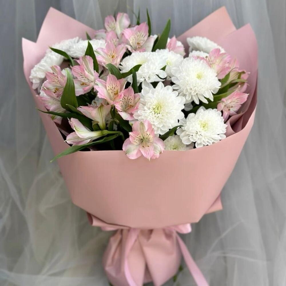 Chrysanthemum - 5 pcs Alstroemeria - 8 pcs decorative greenery - 3 pcs