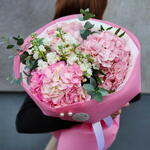Eucalyptus - 3 pcs Hydrangea - 3 pcs Pistacia - 1 pcs matthiola - 3 pcs