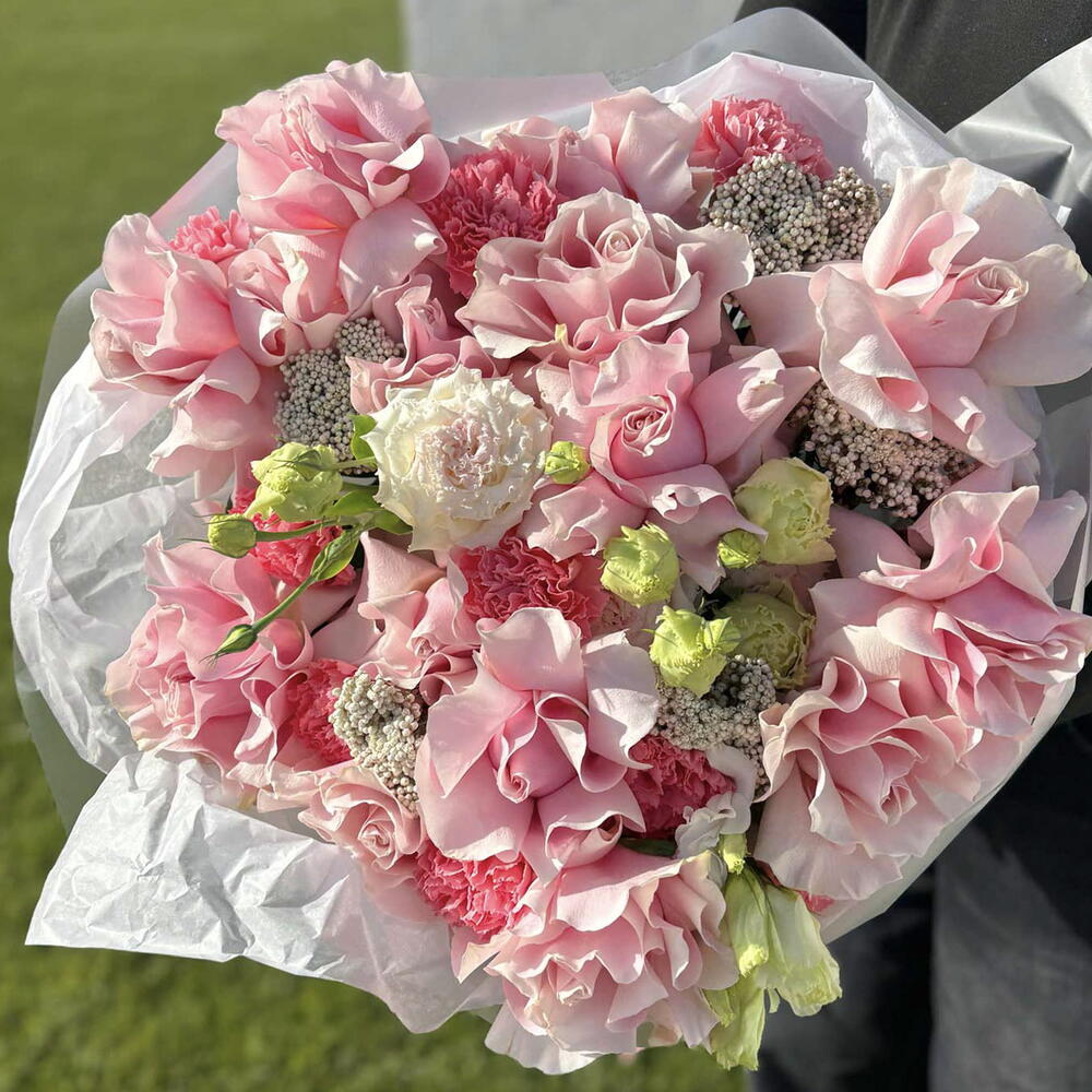 Lisianthus - 4 pcs carnations - 8 pcs ozothamnus - 5 pcs french roses - 12 pcs