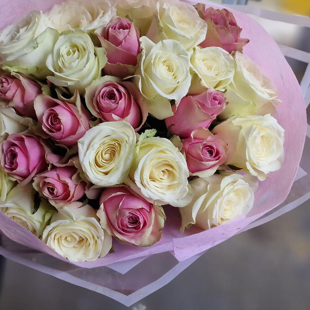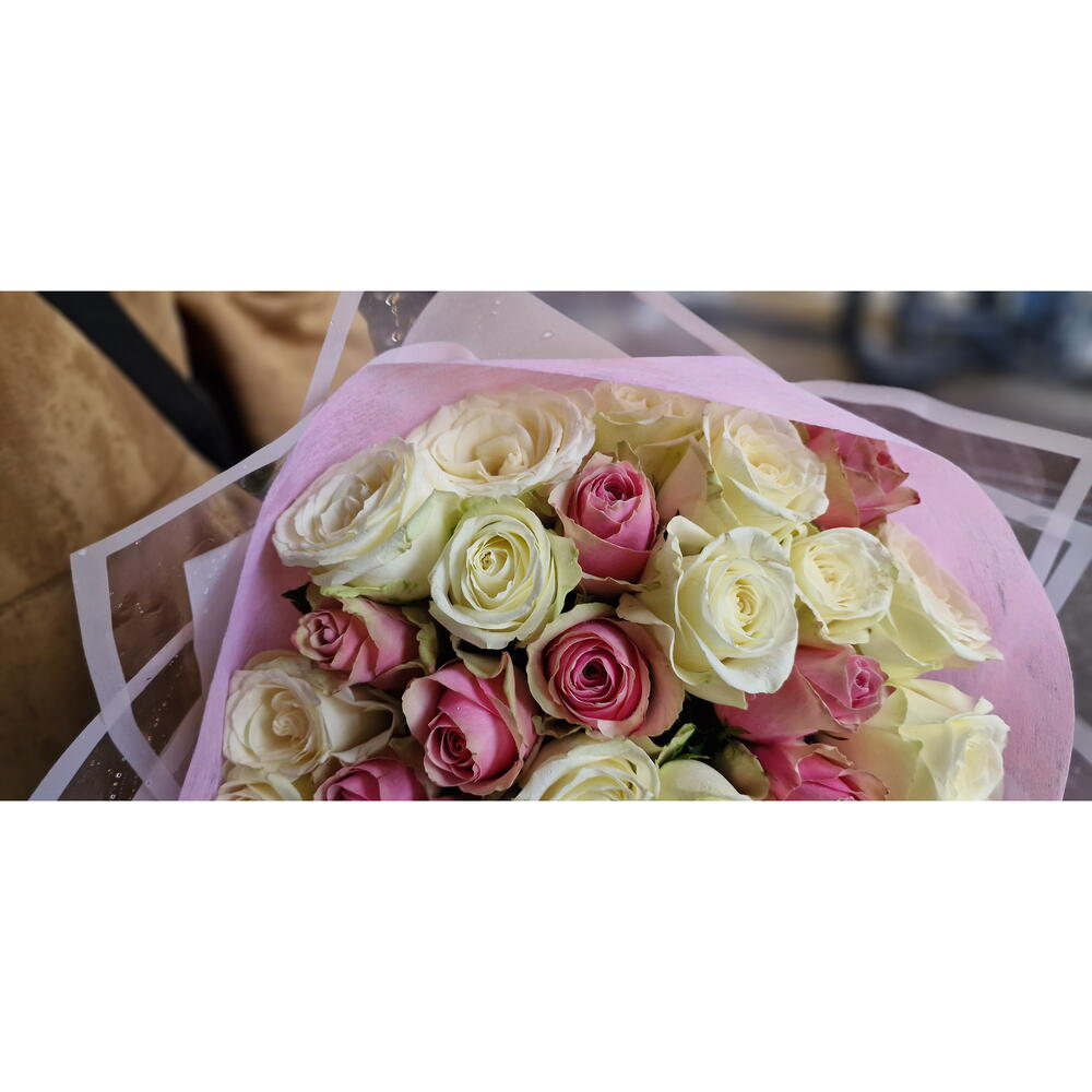 pink roses - 17 pcs white roses 50 sm - 18 pcs
