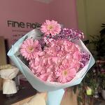 Gerbera - 3 pcs gypsophila - 1 pcs hydrangea - 1 pcs eucalyptus - 1 pcs