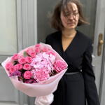 Hydrangea - 1 pcs Eucalyptus - 2 pcs Dianthus - 5 pcs roses - 2 pcs bush roses - 2 pcs