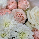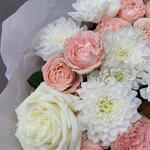 Ribbon - 1 pcs Spray rose - 4 pcs rose - 3 pcs packaging - 3 pcs chrysanthemum - 3 pcs