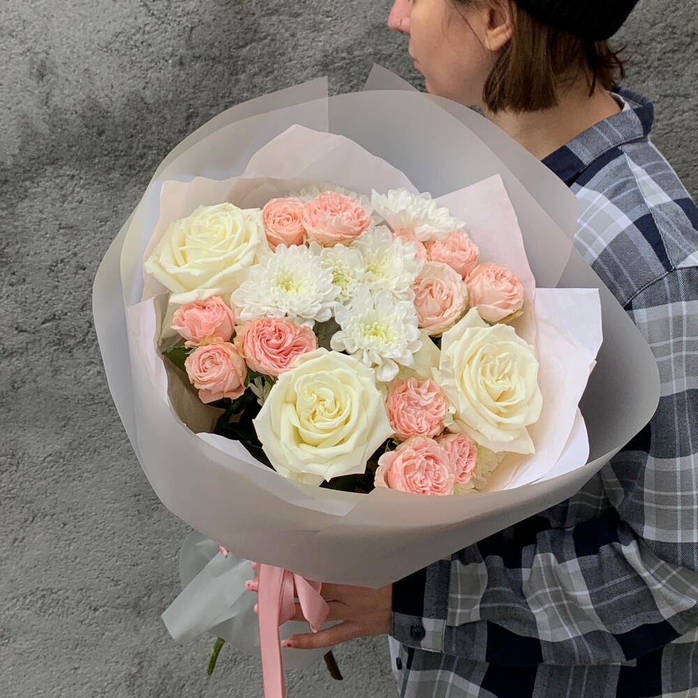 Each bouquet is handcrafted by our florists, making every arrangement unique. Due to seasonal availability, slight variations from the catalog photo are possible. If necessary, flowers may be substituted with similar ones of equal or higher value while maintaining the bouquet’s style and color palette. We will inform you in advance of any changes.
