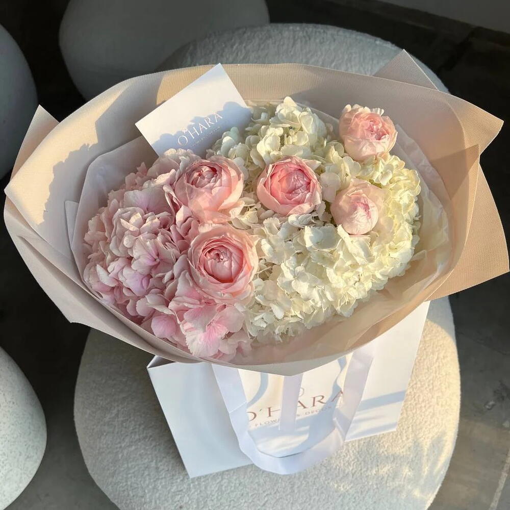 Hydrangea - 6 pcs peony pink rose - 5 pcs
