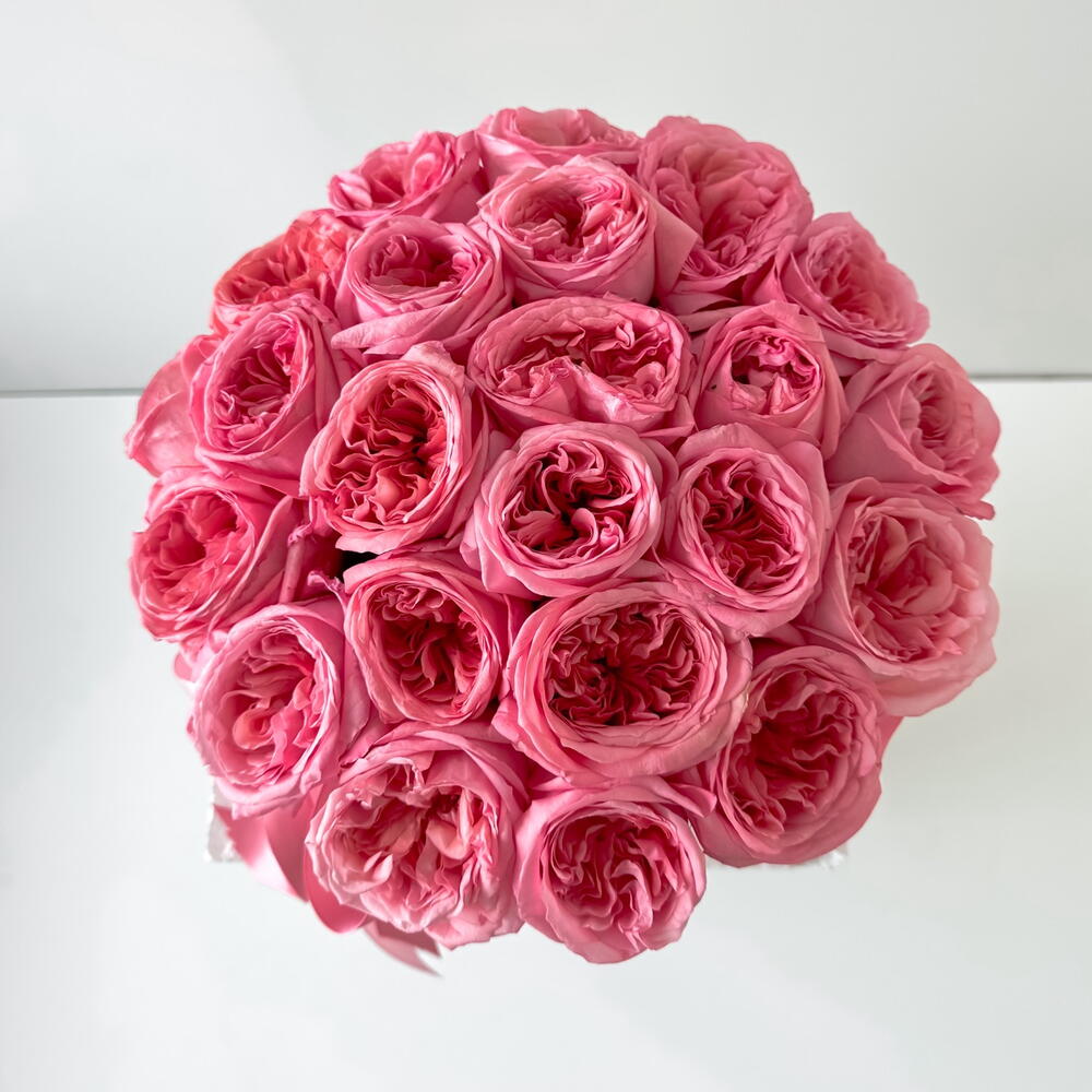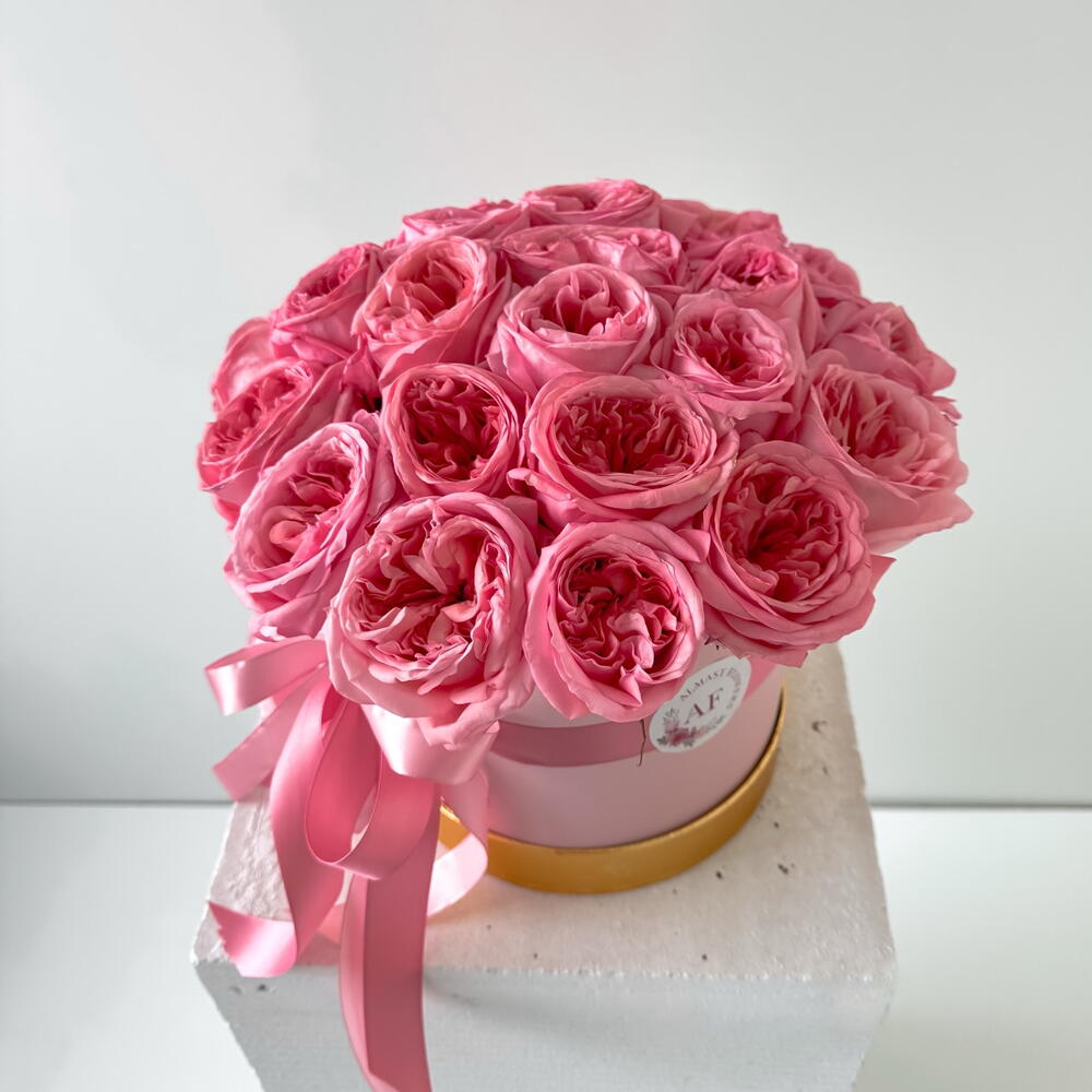 Pink peony roses in a box