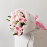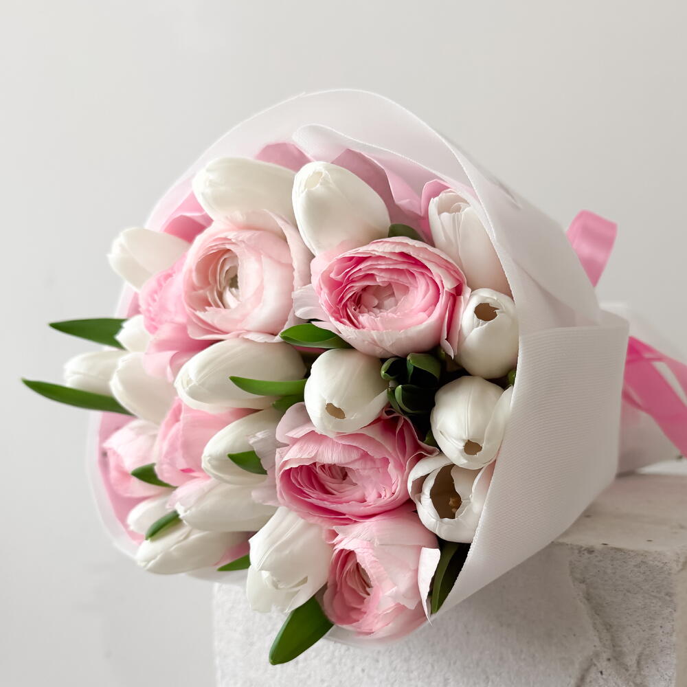 white tulips - 17 pcs pink ranunculus - 7 pcs