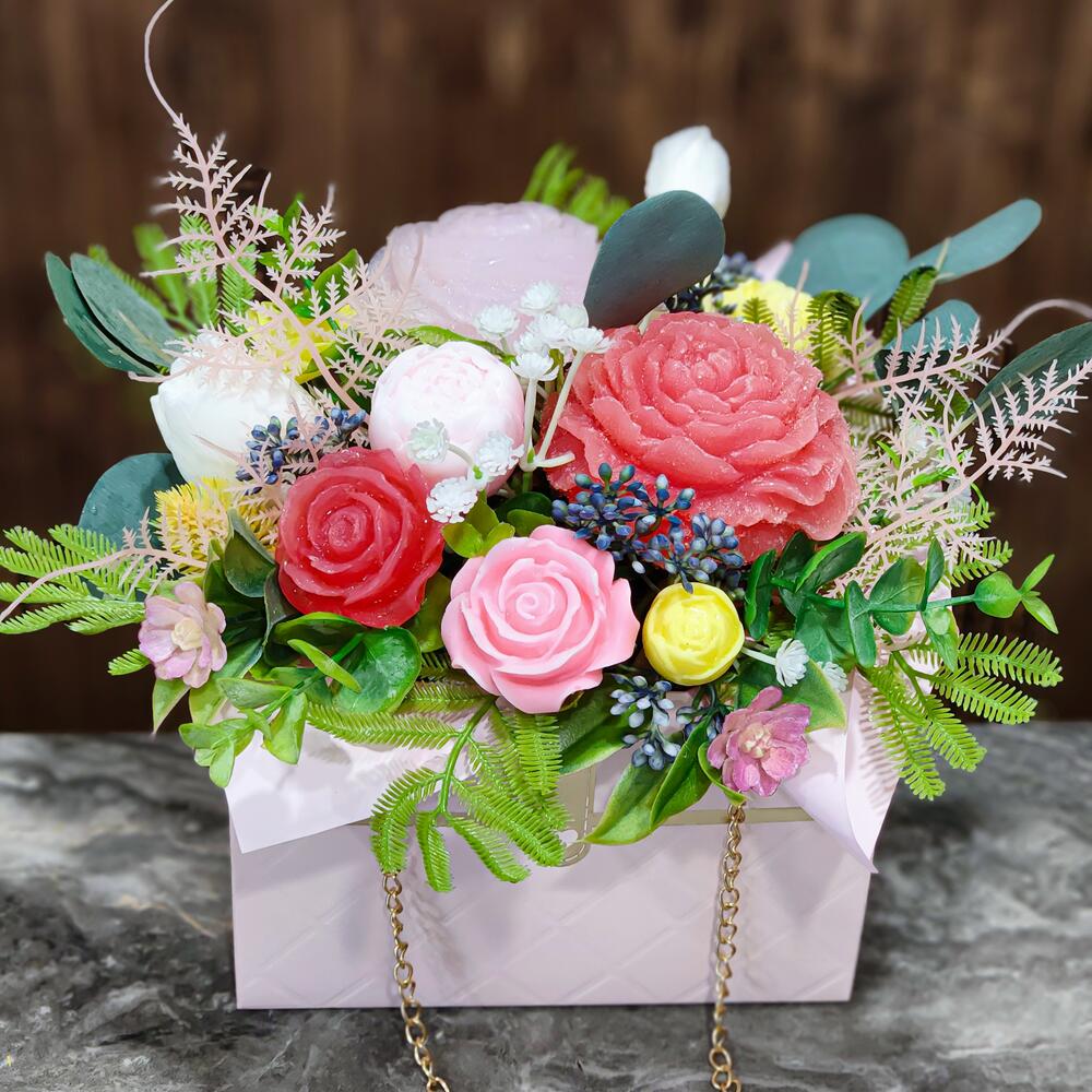 The soap is made with the addition of goats milk, glycerin, colors and perfume