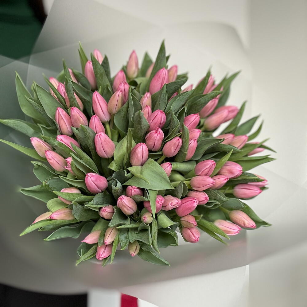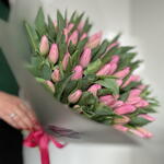Satin ribbon - 1 pcs Tulips - 45 pcs foliage - 2 pcs